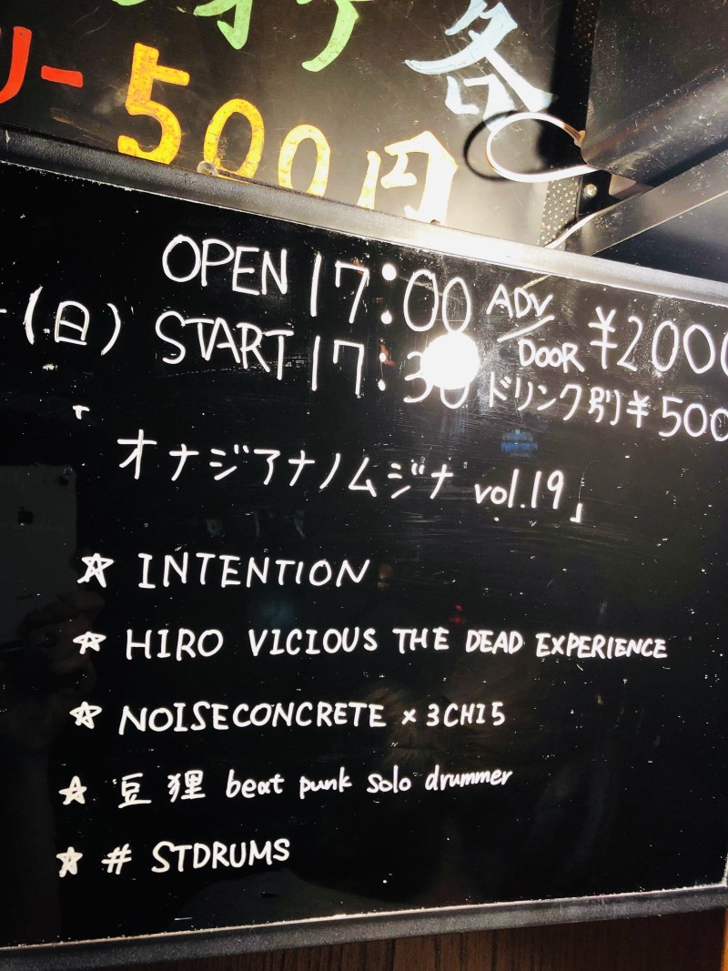 14/08/2022:オナジアナノムジナ vol19【#STDRUMS + NOISECONCRETE×3CHI5 + HIROVICIOUS THE DEAD EXPERIENCE + INTENSION + 豆狸】at 星ヶ丘 Rock Bar UK