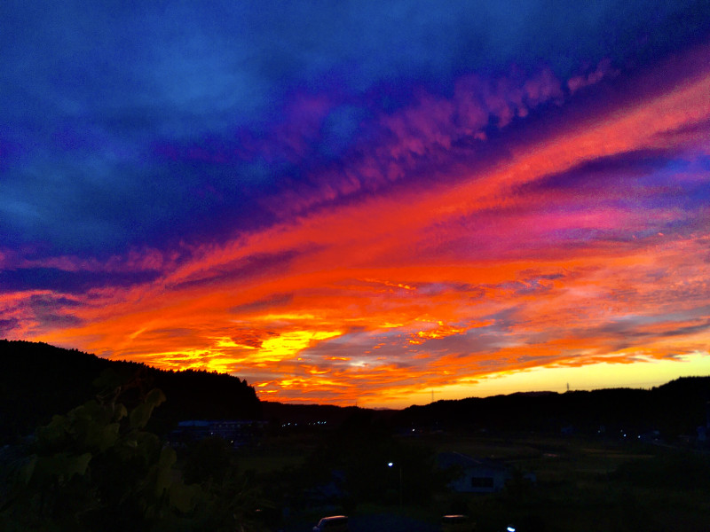 道中のコーヒー屋さんを経て玉名SAにて一度撃沈。目が覚めると素晴らしい夕焼けに覆われていた。昨年7月の福岡でも似た景色を眺めており、やはり九州の空は一味違う。絶景にて体力を引き戻し、アイルランドでの留学、人付き合いの距離感といった話題を繰り広げながら19時過ぎに福岡は福津のスタジオクゥーへ。まさしく、1年前に夕焼けを見上げていた場所である。