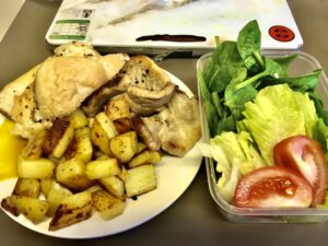 ブリティッシュ豚肉。ただ混ぜただけの蜂蜜マスタードが激烈に美味い。スピナッチとの相性も抜群。お皿が不足しているためタッパーでのお届けとなります。気付けば夜。