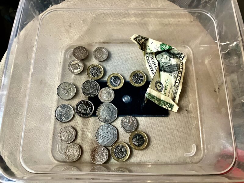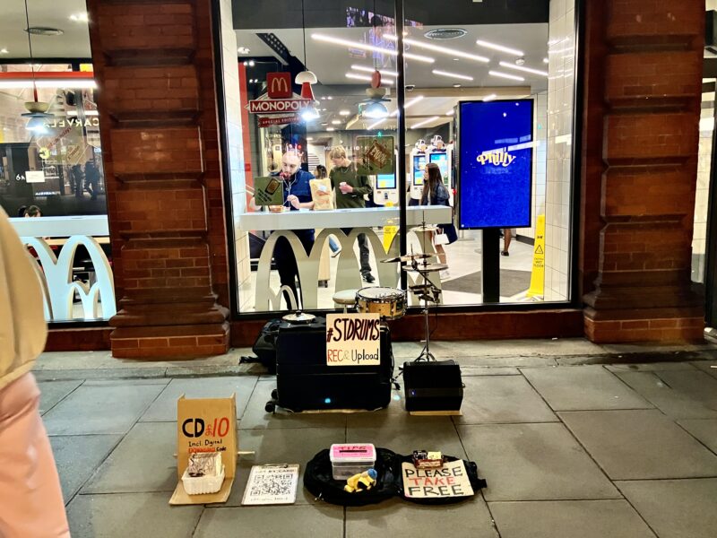 移動も多い日だったが週末の夜。セントラルでバスキングを試すには理想的な条件下にいる。機材を持って China Town へ向かう。以前のバスキングスポットには多くの野外席が並び、ドラムを叩けば間違いなく苦情が来る距離感。近場を見回るものの人が多過ぎて道を塞ぐのが難しい。Oxford CIrcus まで足をのばして、メインの交差点付近で男性から「ここだと警察が来るからマック前に行ってみろ」ということで指定位置まで移動。ようやく場所にありついてのバスキングは約2時間で£8という凄惨な結果で終了。音楽への関心どうこう以前に、QRコードでさえ手間な状態で現金を持ってない以上は太刀打ちできない。
