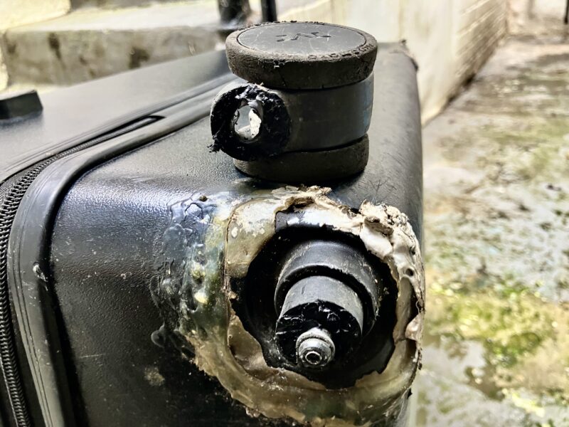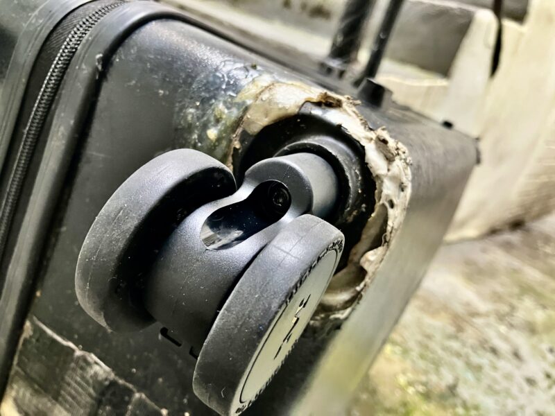 「音小さいプロブレム」解決に向けて機材チェック。スーツケースのキャスターがちょうど破損したタイミングで中村まり子先生現る。ダンジョン内で出会う商人よろしく新しいキャスターを受け取ったものの、ネジ穴が潰れてしまいレンチが合わない…Cosmo と連絡をとり、Victorinox を借りてノコギリで裁断。ペンチでネジをもぎ取り交換完了。全てが首尾よく回っているが、破損しすぎだぜ。