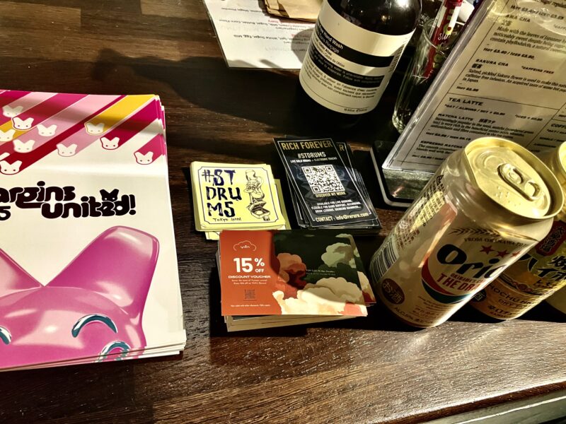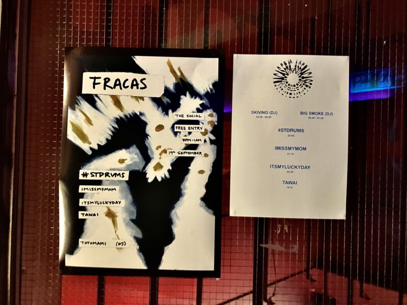 17:00 にThe Social へ。BIG Paul ともリユニオンしてサウンドチェックスタート。お互いを知っている仲での作業は強い。限りある機材でスムーズに音を作っていく。オープンまで時間があったため、長年使ってきた表ヘッドもいよいよ交換し、共演者の人々と話しながら物販を設営してオープン。動き出してから「思いついてしまう」のがわたしの悪癖。適度に済ませてライヴへ戻る。トラック+ソロという同じ形の Tawai から始まり、ケーブルのトラブルをギリギリで乗り越えた ITSMYLUCKYDAY. IMISSMYMOM を経て #STDRUMS。