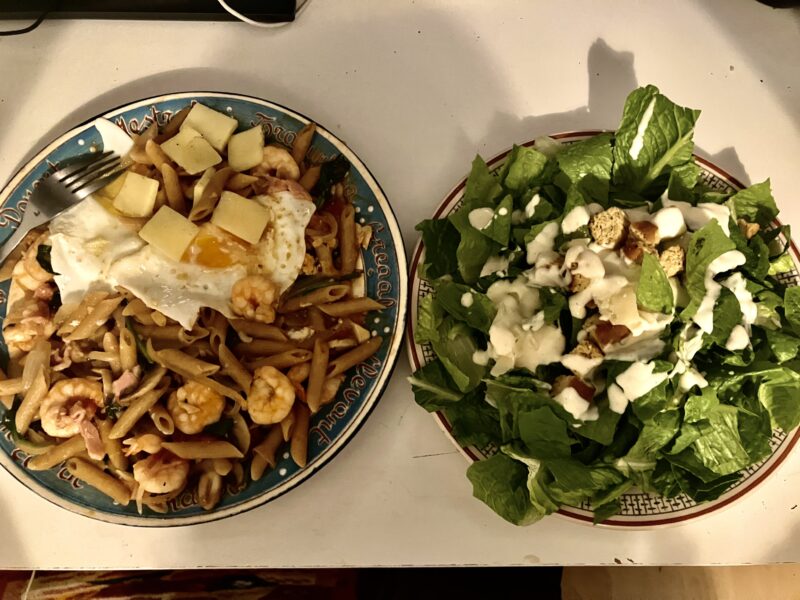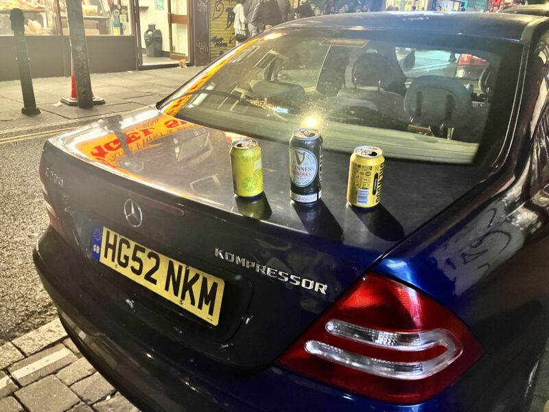 Tesco にてレデュースド海老とサラダセットを手に入れてあまり物パスタ。作業を進めて22時ごろに目と鼻の先にあるかつて100に向かう道中「ニホンジン?」と声を掛けてくれたセキュリティ。親戚がいるかで日本語が堪能で、日本名はケンジ。ユカ主催のイベントは入場規制が掛かる人気で、中に入れないためオフライセンスへ向かうと「見たことあるよ」と声を掛けてくれたIzzy。オーストラリアから越してきたというDean、Olivia とも仲良くなり、ケンジの車を机として使わせてもらいながらハングアウト。ケンジ最高。