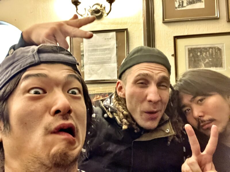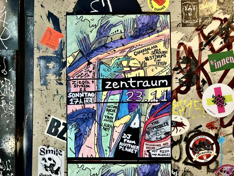 こうして仕上がりまくりのコンディションで23日は Berlin – Zentraum にてライヴ。ベルリンは8年ほど前にバスキングで来たことがある以来、屋内会場でのライヴは初めて。Google Map には出てこない、アンダーグラウンドの関係性で成り立っている場所でのライヴはカルチャーの意味と成熟を教えてくれる。自由が重なり合い生じる混沌のなかで垣間見える恍惚のような時間。限られた機材のなかでの選択、前に動いて行ってしまうキック。楽しい反面シビアなツアースケジュールでもあり、ドイツでの過ごした日々も忘れられない瞬間の連続でした。