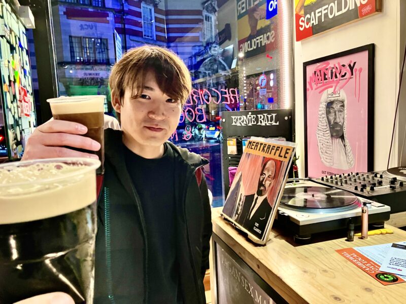GUINNESS の写真で始まる木曜日。コウちゃんマネージャー合流で Dash The Henge へ向かい昨日の取り置きを回収。レコード屋なのに自動で GUINNESS が出てくるのが Dash The Henge。Chirs and Tim、どうもありがとう!RAT RECORDS に始まり、この場所には随分とお世話になっている。その後 Wheaterspoon にてパイント & FISH 儀式を終えて The Royal Exchange にて Johnny、Sho と合流。店長の Aki さんは6月に出会った Gaz’s Rockin’ Blues の周りと繋がっており、これまた嬉しい出会い。贅沢にもダブル奢り GUINNESS を嗜みながら彼らとも別れを告げる。