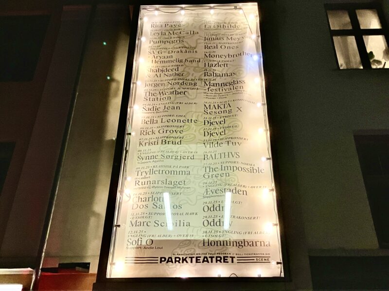というわけでスーパーでの買い出しをして、夜は Espen 邸にて簡単な夕食。その後街へ出て19日の会場 PARKTEATRET の下見。ちゃんとイベント名が掲載されていることを確認して、Espen 飲みルートをフォロー。バンドメンバーの ロジャー、サウンドエンジニアのモアーと話しながら、ノルウェーのジン Akevitt を嗜む。ライヴ会場でもある REVOLVER と、セントラルの秘密基地のようなバーで Oslo GUINNESS チェック。やはり回転数が GUINNESS のフレッシュさを生むのだと実感。こうして遂にUKを離脱し新境地ノルウェーへ到着。愛と友情に溢れた最強伝説 “MANNEGLASS FESTIVALEN” が開催されようとしていた…。