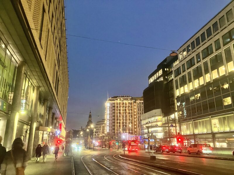 昨夜の Får-i-kål の余りにキャベツを増して昼食。パンツは2本とも随分とくたびれてしまい、より崩壊している方の生地をもう片方に移植して穴を埋める。宇宙船が少しでも軽くするために酸素ボンベを切り離すような感覚で荷造りが進む。16時ごろにJuan と共に駅へ向かい、彼とはここでお別れ。Oslo の歓楽街の方面はクリスマスに向けてイルミネーションが点灯し、坂が多くトラムが走る街並みはカラオケのバックで流れる映像のような風景。レコードショップの Platebutikken Big Dipper にて Ola と合流。店内ではライヴも行われるらしい。