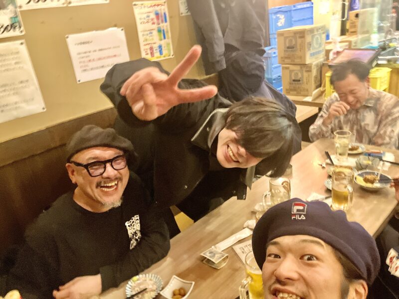 そんなセッション欲の流れで笠原さん、ウエダテツヤと共に活動するギタリスト:ユウジくんの基地へセッションに向かうと、ベースはまさかのヒカル。出会ったら面白そうな人をサプライズで呼んでくれていたのだが、もう既に面白いことになっていた。ファンク・ブルースを地盤にしているユウジくんは新しいアプローチを求めていたようでジャングル発動。音量制限がある環境のためむしろクリアに録音できている。このあとジャズ練習会も始まり、このジャムは今後も是非続けていきたい。(うっかり写真を撮り忘れたため、夜行ったライヴの後に会合した旭川MOSQUITO 大西さんと翔ちゃんの写真。)
