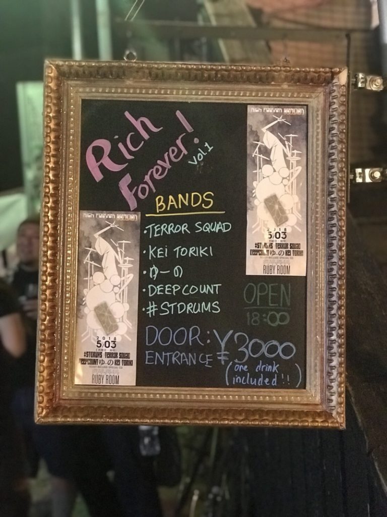 HEREのサポートドラムでお馴染みのユージ主催のイベント“RiCh FOeVeR SeMiNaR”へ。会場は渋谷のRUBY ROOM。さすがロック純粋主義者のユージが集めたメンツだけあって、芯が通ったバンドばかり。久々のゆーのはやっぱりカッコよかったし、なによりDEEPCOUNTが凄まじかった。これぞ異種格闘技ライブ! pic.twitter.com/pERI1PxfB9