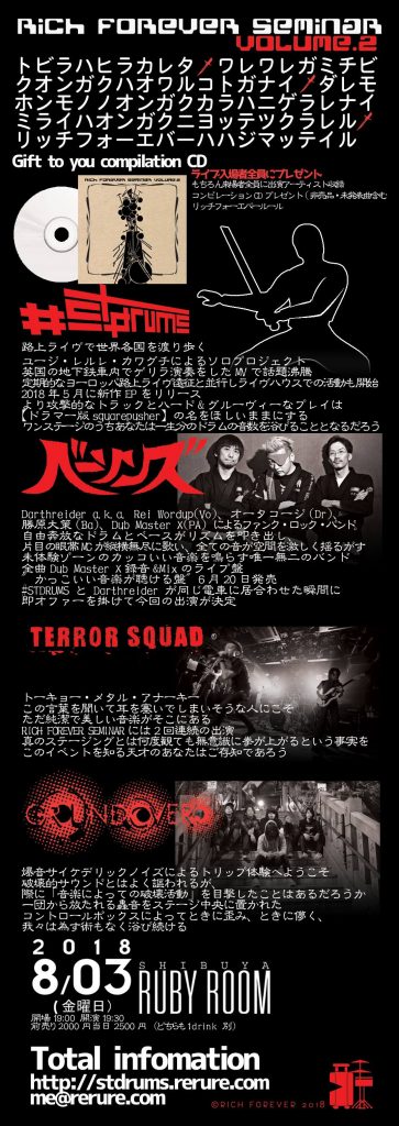 トーキョー・メタル・アナーキー この言葉を聞いて耳を塞いでしまいそうな人にこそ ただ純潔で美しい音楽がそこにある RICH FOREVER SEMINARには2回連続の出演 真のステージングとは 何度観ても無意識に拳が上がるという事実を このイベントを知る天才のあなたはご存知であろう